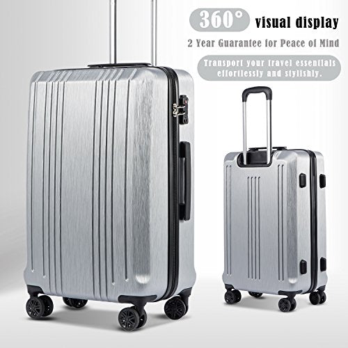 Details: COOLIFE luggage insists on excellent quality to make your journey safe and enjoyable. This set is ideal for personal and business travel which is in line with airline standard. It will transport your travel essentials effortlessly and stylishly. The suitcase features multi-directional silent dual spinner wheels rotate 360 degrees for easy maneuverability while the sturdy ergonomic telescoping handle with adjustable 3-step provides fluent and smooth experience. Fully-lined interior with a separate mesh pocket, functional elastic cross ribbons to secure the packed clothes. TSA-approved keyless lock (set by a combination code) guarantees the security of your luggage. The set can be stored inside each other, offering more convenience and saving storage space. What we want to offer our customers is more than a solid case, but the customer's own style and cool life. Ready to travel with your cool life?Features: 360° double wheels: Four multi-directional smooth and silent 360° double wheels, for very high ride comfort. Material : Lightweight durable ABS+PC material ensures long-lasting usage and safety. Type of closure : Exquisite and durable zippers closure. Telescope handle: Push-button locking internal retractable handle system.Lock: TSA combination lock with resettable code for secure travel in the USA. Full-lined interior: Fully-lined interior with separate mesh pocket, Functional elastic cross ribbons to secure the packed clothes.3 piece luggage set fits inside each other, features one 28inch suitcase for consignment, one 24inch suitcase for checking in and one 20inch suitcase suitable for carrying onto the plane. Measures: Size: 20' L22in* W9in* H15in24' 27in* W11in* H17in28' L30.5in* W12in(14in when it is expandable)* H19.5inCapacity : 20in38L 24in60L 28in 93LWeight:20in6lbs 24in7.3lbs 28in9.7lbsTravel days: 20in1~4days 24in4~7days 28in 7~9days