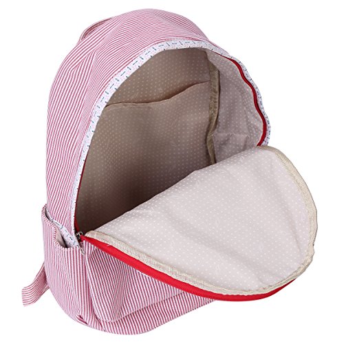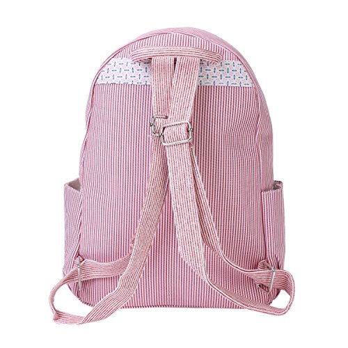 Details: This fasion stripe&floral print backpack is made of canvas fabric.It's nice and big,has good sturdy quilted and adjustable shoulder straps plus a good sized pocket with magic snap closure to the front.The pack offers a large main compartment for you to can load up books, notebooks,and other bulky items and it use a high quality ployester lining.Outside with zipper around,safety for your items.Measurement is app 34x11x36cm(13.3"x4.33"x14.17")
