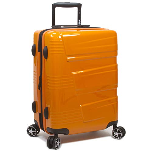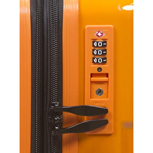 - Durable Polycarbonate shell construction, Deluxe 8-wheel Design for 360° navigation, Telescoping push-button handle system
