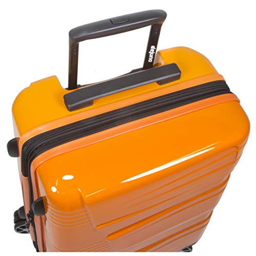 Details: You are ready for any journey with this durable Polycarbonate hardside luggage set from Dejuno. The three pieces range from a roomy 28-Inch to a compact carry-on, all with smooth spinner wheels to help ease the way. The stylish finishes are flexible to help absorb impact and the suitcases expand when you need just a little more room.