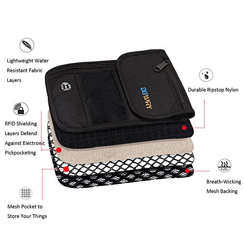 - The light durable nylon material makes it easy to carry, and the well-designed strap and breathable mesh back will be comfortable on top of clothes or against your skin. Comfortable, breathable, lightweight, and water resistant passport holder . The back is made of ultra-soft breathable mesh, which increases your comfort by allowing the evaporation of any perspiration. The zipper is made of a strong zinc alloy making it even more durable.