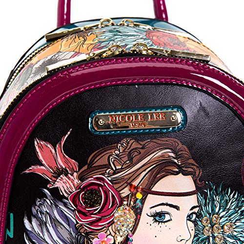 Details: What could be cuter than the fun and stylish look of the Bohemian Print Backpack. Exterior Features: "Angelina Follows Dreams" exclusive print. Made of vegan leather. Metal zipper closure with NL monogrammed zipper pull. Top handle. Zip wall pocket at back. Adjustable backpack straps. Structured silhouette and NL nameplate at back. Interior Features: Two zip compartments with zip wall pocket with NL nameplate at back, double open wall pockets at front, vegan leather key chain strap and NL polka dot logo nylon lining. Vegan leather handle with 3.5" inch drop. Adjustable 20" - 36" inch shoulder strap. Color available Angelina Follows Dream. For cleaning, wipe with damp cloth.
