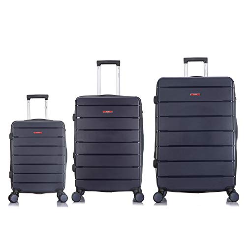 Details: DUKAP develops and produces products under the most rigorous stress tests, simulating real life scenarios to maximize the durability of each component to create the perfect suitcase. DUKAP is more than a suitcase, it's a lifestyle. The DUKAP Definity Collection is made of lightweight polypropylene - the hard-flex construction offers an offers an almost indestructible shell, durability and a water-resistant finish. The suitcase expands an extra 2" inches for extra space and has 4 dual spinner wheels for effortless mobility in most terrains. It also has two ergonomic gel handles for comfortable handling and lifting: on the side and the top handle, connected to a retractable push-button trolley that automatically locks at two heights and flush against the shell. To keep the shell of the suitcase clean and away from the floor, use the 4 side studs, allowing the suitcase to stand upright, with the help of the side handle. For easy and organized packing, the interior is fully lined in fabric, with a zippered compartment on one side and a snap closure strap on the opposite side. Additionally, there is an inside mesh zippered pocket and 2 slip pockets for shoes. And to keep all your belongings safe, it includes a built-in 3-digit TSA-approved Combination Lock - the set-up instructions come included with each suitcase. The Suitcase also comes with a Lifetime Warranty on the Suitcase Shell and 10-year Limited Manufacturer's Warranty on Workmanship. The DUKAP Definity is available in 3 sizes: 20" Carry-On, 24" Medium Suitcase, 28" Large Suitcase - Also Available as a 3-piece Set. Choose from 4 colors: Black, Blue, Grey, and Purple
