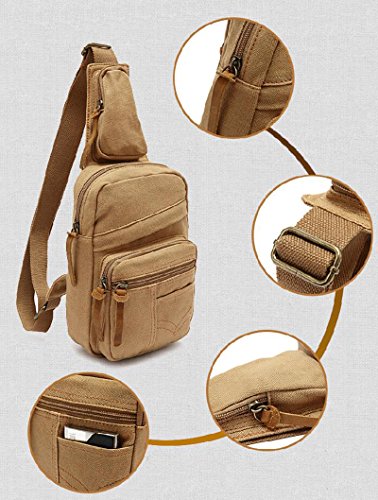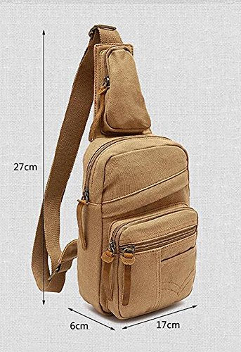 Details: This bag is made of Canvas and PU (Faux) leather, for a rough vintage look. The bag has adjustable straps, providing a range of 11.7"-35.4" (45cm - 90cm) in length. The bag can be worn cross-body or as a shoulder bag. Bag size: 10.6" x 6.7" x 2.4" / 27cm x 17cm x 6cm. Available colors: Brown, Army Green, Khaki.