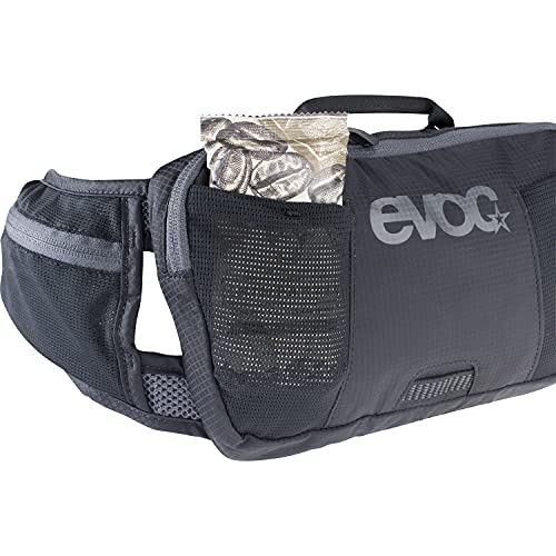 - Box contents: EVOC hip pouch, 1 hip bag for bike tours and trails, air pad system for optimal comfort, 2 hip belt pockets, 2 additional compartments, volume: 1 litre, weight: 220 g, colour: black