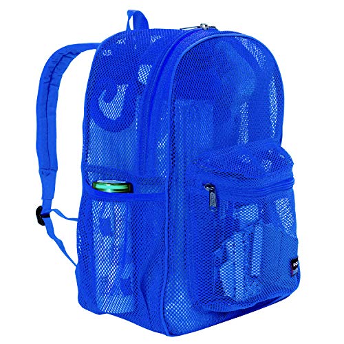 Details: High Quality Mesh Backpack with large quality zipper on main compartments. Dimension: 17"(H) x 13"(W) x 5.5"(D). Heavy Duty See Through Student Mesh Backpacks with zippered front pocket, Premium Transparent Net Basic Students Bookbag pocket on both sides. Deluxe Classic Mesh Daypack with Adjustable and padded shoulder straps and handle for easy carrying. Super Durable Quality Mesh School Bookbags made with heavy duty mesh material.