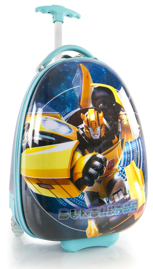 Details: Designed especially for kids. The ''Designer Transformers' collection was created by Heys with the unique characteristics of children in mind, as it incorporates several design features that benefit children. These beautiful cases have Transformers characters specially printed onto their hardshell surfaces. In creating a 'High-end' series for Transformers our designers incorporated several children-specific features. One of these is the internal 'reversed-curved' handle system that curves the handle inwards & upwards closer to the child, making it much more comfortable for the child - at a low height - to hold and navigate the case. The Patent Protected design of this case also allows the wheels to 'protrude' out. This protrusion keeps the case elevated, so that even when being rolled at a very low height off the floor, the wheels will be the only point of contact and the case will continue to roll with ease. The cases weigh in at a mere 3.7 lbs, and feature our inline skate wheels that make their rolling even smoother, so any child can easily wheel these fun cases around. They also have a zipper closure system, that when opened reveals a beautifully lined interior as well as a zippered divider for internal organization.