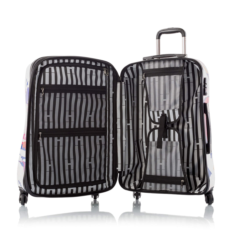 Details: Be a fashionable globetrotter with the Heys new Fashion Spinners with print designs that reflect the latest runway trends. This sophisticated new style is the next generation of Heys popular 'Fashion Spinners' luggage - it's been completely redesigned from the ground up with all-new features!