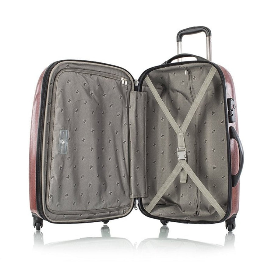Details: Size:One Size | Color:Burgundy The SuperLite embodies one of our lightest hardside luggage sets ever! With the innovative combination of 100% Polycarbonate and lightweight components, Heys has once again created an incredibly lightweight design with uncompromising durability and functionality. Polycarbonate has been specifically designed for use in luggage due to its high impact resistance and exceptional strength properties. It is strong and rigid enough to withstand severe impacts, but agile enough to flex and maintain its structural integrity. To help prevent surface scratches and scuff marks, a new cubic emboss texture has been applied to the SuperLite's exterior giving it unique surface finish. The SuperLite's spinner wheels spread the load weight evenly while allowing for effortless motion in different terrains. The fully lined interior features a buckled compression strap as well as a zippered divider to help keep you organized while travelling. It has a push-button telescopic handle system with multi-stage locking heights, and comes with a zippered expansion system allowing for an extra 20% in packing capacity. The SuperLite offers incredible strength, durability, functionality and lightweight properties altogether. Available in a 3 pc set.