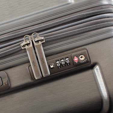 - Fully lined. Interior features a compression strap, four mesh zip compartments, and a zip divide. Zipper-released expansion system allows for an extra 20% in packing capacity. Built-in TSA lock. Four swivel wheels allow 360 degree rolling for perfect control. Imported. Measurements: Width: 16 in Depth: 11 1⁄2 in Height: 25 1⁄2 in Weight: 8 lbs 15.4 oz