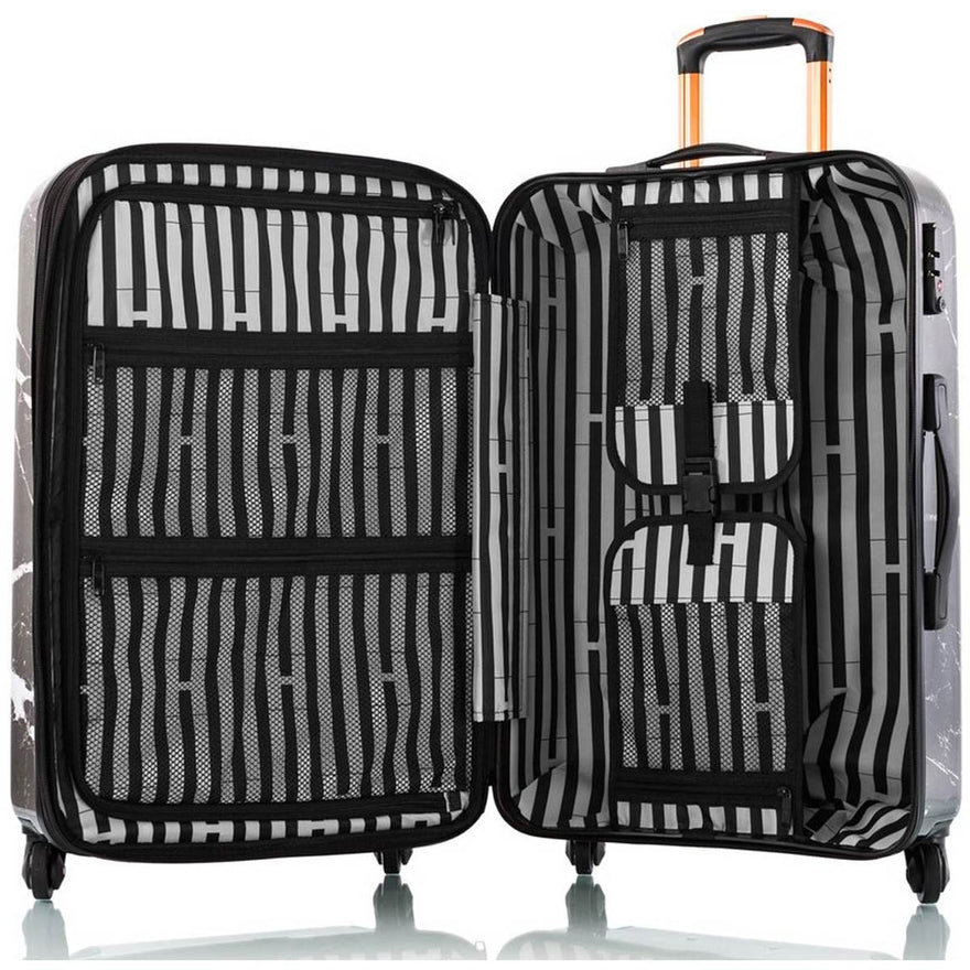 Be a fashionable globetrotter with the Heys Marquina Fashion Spinnerstrade; with print designs that reflect the latest runway trends. This sophisticated new style is the next generation of Heys popular lsquo;Fashion Spinnerstrade;rsquo; luggage ndash; itrsquo;s been completely redesigned from the ground up with all-new features!
