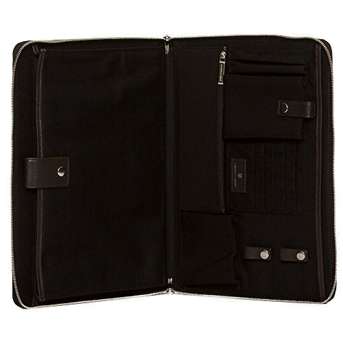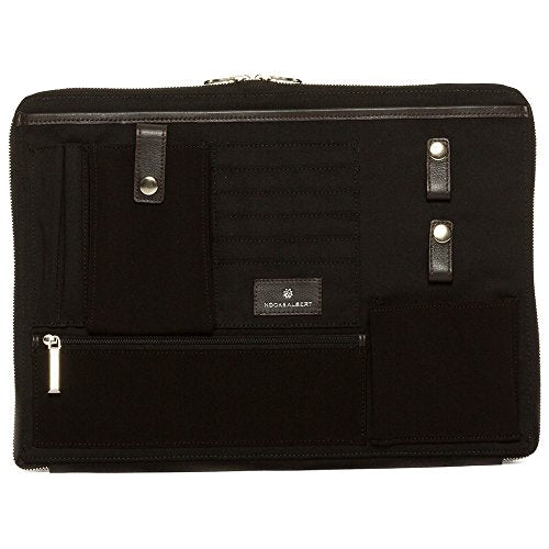 Details: Welcome to the HOOK & ALBERT Reversible Portfolio. At its most basic function, it is a padded sleeve to protect your computer inside a larger bag. What's more, it also contains pockets, pouches, and snaps for the rest of your daily work necessities (files, documents, business cards, pens, phone, cords, headphones, etc.). The Reversible Portfolio allows you to pack it with just the core necessities, leaving the "just in case" items neatly in your larger bag. When ready to slim down, simply remove the portfolio from your bag, unzip all the way and reverse it into a sleek portfolio that can be carried either under the arm or by your side with the handles. Put in a bag or carry it as a bag. Either way, this is a must have for the modern businessman on the go.