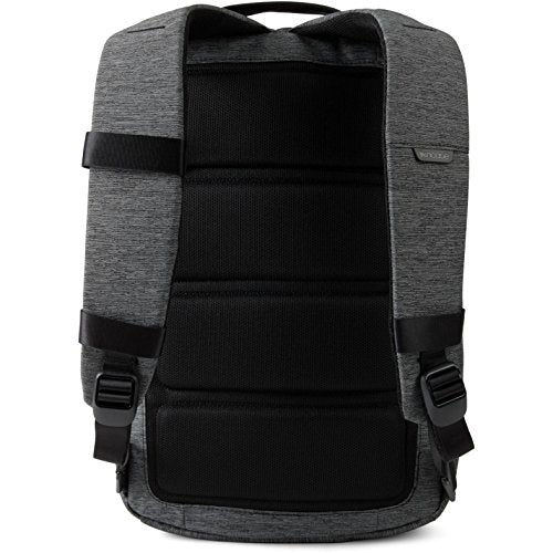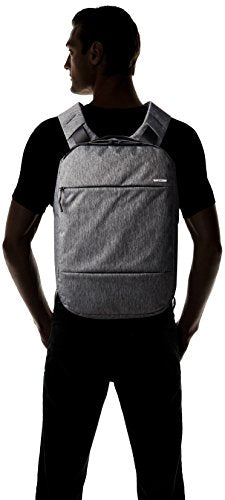 Details: A compact Incase backpack designed for traveling. Constructed with weight-bearing tensile panels with a durable technical shell. Zip front pocket. Easy-access faux-fur-lined 15" laptop compartment. Padded tablet sleeve in the lined, 3-pocket main interior. Top handle and padded, adjustable shoulder straps.