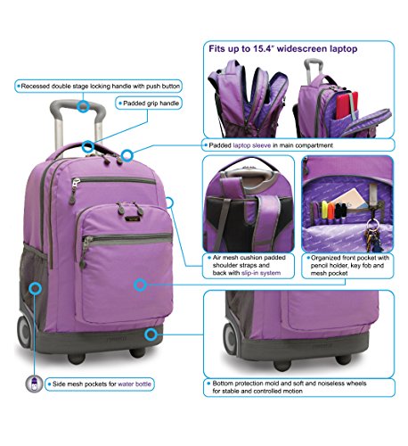 · PEFECT SIZE FOR SCHOOL: Dimension of 20 x 13 x 9 inches Roomy Rolling Backpack with Padded Laptop Sleeve Can hold upto 16-inch laptop