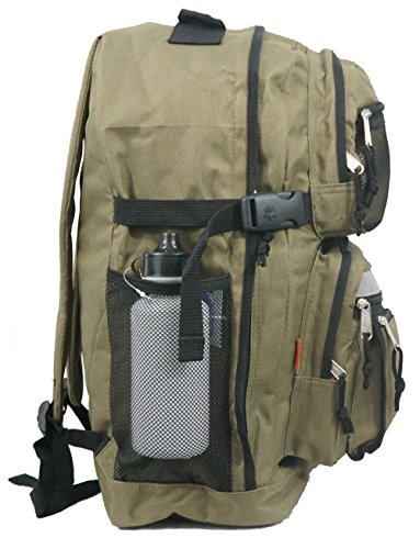 Details: Large backpack with multiple compartments. Reflective stripe for safety purpose. Good use as emergency pack. Backpack Size: 19"H x 13"L x 8"W. Large Backpack with extra large main compartment include 1 large main compartment and 5 front pocket with zippers. Oversize Backpacks with Safety reflective strip on front. Front pocket with organizer, Large Student Bookbag with side mesh pocket with Free water bottle and a side zipper pocket, Big College School Bag with mesh pocket on front, quick release adjustable buckle compression strap at side. Deluxe Travel Daypack Luggage with organizer in front pocket.