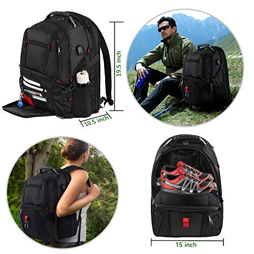• TSA LAPTOP FRIENDLY&MULTIFUNCTION: Awesome feature designed for air travel, easily unzip laptop compartment flat for TSA scan at airport security, no need to take out anything and get through airport security quicker, this extra large laptop backpack is your best mate in various occasions like business trip,international travel,weekend getaway,college school,camping,hiking,any outdoor and indoor activities