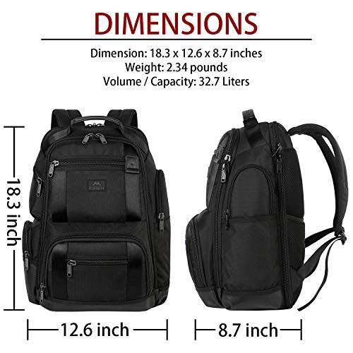 - 🏆 Large Capacity:Dimensions 12.6"L×8.7"W×18.3"H, 32.7 liters. Large capacity backpack organizes your daily accessories. Padded laptop compartment with elastic Velcro fits up to most 17 inch Laptop/MacBook/NoteBook and high tech gadgets. Lockable U-zip pocket has enough room for business essentials. Separare front organizational pockets for all your writing utensils/keys/cards. 3 side zip pockets for umbrella, water bottle&quick access items, ideal mens travel backpack, business laptop backpack
