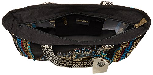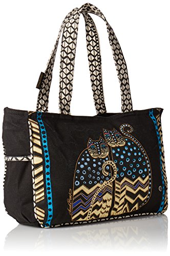 Details: These laurel burch totes are designed with her magically uplifting whimsical creatures. The bright colors, fun images and the practical construction of these totes make them popular all over the world. Features-10 by 15-1/2 by 4-inch, cotton shoulder straps, main zipper closure, a 6 by 6-1/2-inch zippered pocket with a removable bottom support. Spotted Cats is constructed of heavy canvas with bead accents and includes one canvas and one wooden charm. Imported.