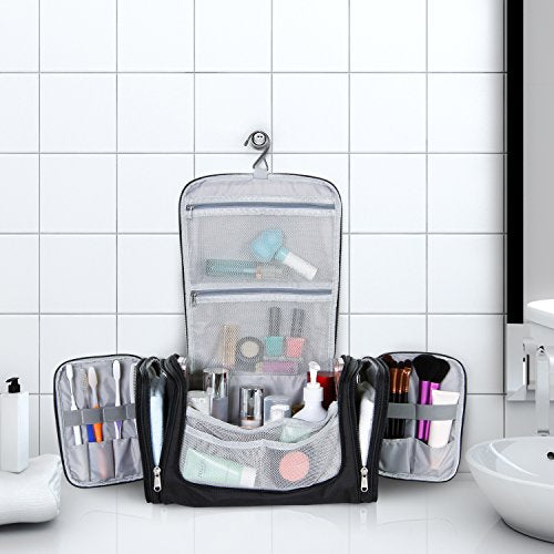 - LARGE CAPACITY: The main compartment features massive opening that makes it easy to store and take out items. Spacious main compartment along with various mesh pockets allow for categorized organization and storage of personal items such as makeup products, shaving products, hygiene products, and much more.