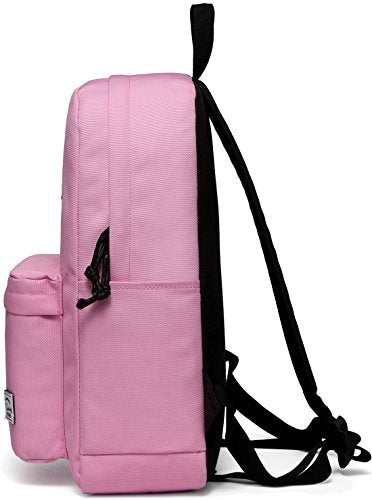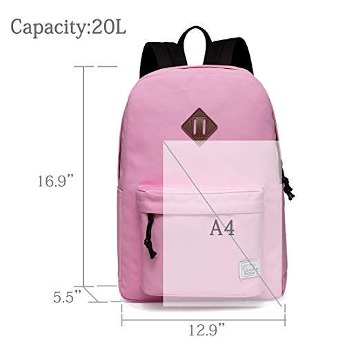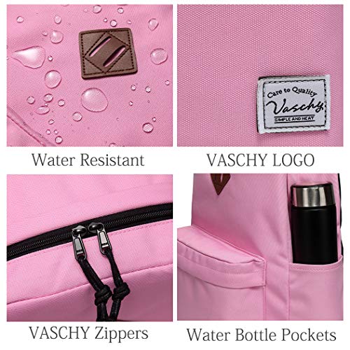 Lightweight Backpack for School, VASCHY Classic Basic Water Resistant Casual Daypack for Travel with Bottle Side Pockets (Pink)