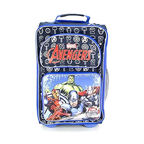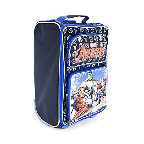 Details: Marvel avengers pilot case. Made of 100 percent polyester for durability. Zipper closure pull handle, large interior packing compartment with mesh interior pocket for convenient packing. Also has front pocket zipper for additional storage. Travel in style with this trendy roller.