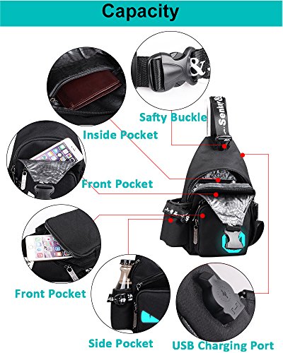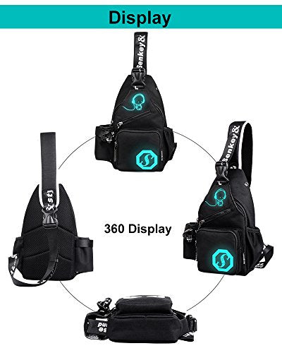 Details: Sling Bag, Mens Womens Unisex Luminous Wide Shoulder Sling Bag with USB Charging Port