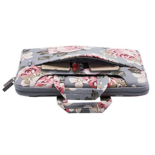 - Outer canvas fabric of the case is printed with rose pattern style that enables you to carry your MacBook / laptop / notebook / Ultrabook computer in a uniquely sleek style. Top-loading zipper on the bag glides smoothly and allows convenient access to your laptop computer.