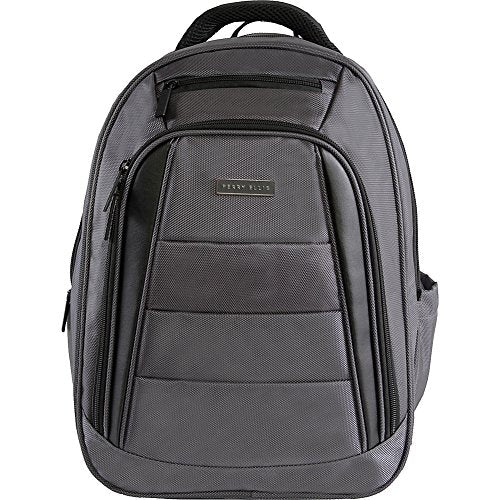 Details: Head to work with your laptop, tablet, files, folders, and anything else you need with the M325 Business Laptop Backpack. The Perry Ellis M325 backpack is made with durable 1380 denier nylon fabric and has everything you need and nothing you don't. With a padded air mesh back panel and shoulder straps, this backpack features 2 small accessories pockets, a deluxe internal organizer, a comfort top handle, and a luggage handle pass-through. A large main compartment allows you to carry almost everything you need. Take the M325 Business Laptop backpack to your next meeting.