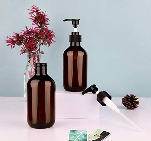 Details: Pump bottle dispenser, Yebeauty Empty Amber Bottles with Black Lotion Pumps 10oz/300ml Pump Bottle Refillable Containers for Emulsion Shampoo ,Essential Oils, Cleaning Products, Pack of 2 Dimensions: size: 6.45 x 2.11 inches capacity: 10oz/300ml Features: brown color thin neck PET plastic black pressure pump Specifications: our plastic pump bottle is perfect for soaps, essential oils, cleaning products or various other uses Package: pack of 2 brown bottles