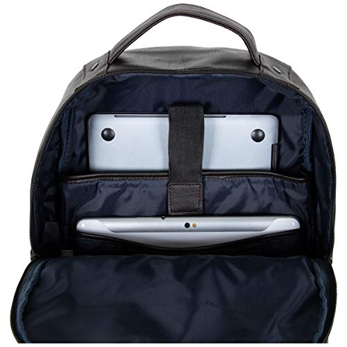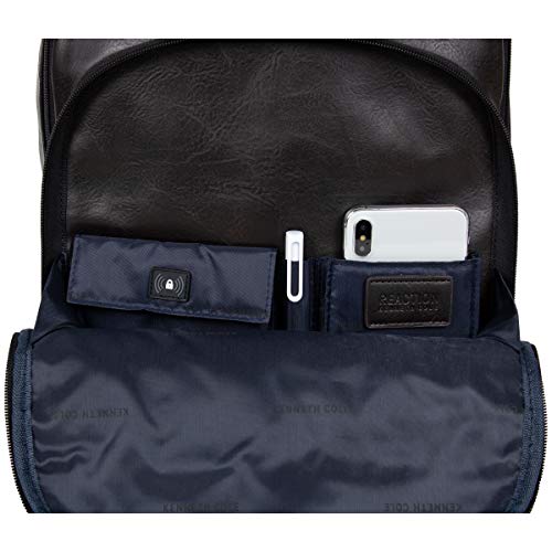 Details: Do not stress, because this savvy, distressed faux leather bag from Kenneth Cole Reaction is made to carry everything you need. Features distressed faux leather exterior and a tear-resistant, fully lined interior. The laptop pocket is made to fit most 15.6” laptops and most tablets. Features TECHNI-COLE™ RFID: Anti-theft radio frequency identification (RFID) blocking technology in organizer pockets lined with thin shielding fabric to help block radio waves from being transmitted from U.S. Passports and certain credit/debit cards. The roomy, main compartment includes a padded laptop, padded tablet pocket, a full-length slip pocket, two open mesh pockets, with plenty of room to store other needed belongings. Front exterior features easy access zip pocket and a gusseted zip down, RFID protected organizer made to hold a variety of business essentials. Convenient, easy to carry, top handles and adjustable shoulder straps provide comfortable carrying options. Size: 18.0” H x 12.0” L x 6.0” D. Computer Pocket Dimensions:15.0” H x 10.0” L x 1.25” D. Weight: 3.2 lbs.