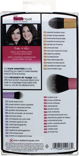 - Real Techniques Travel Essentials Set includes our Essential Foundation Brush, the Multi Task Brush, the Domed Shadow Brush, and our panoramic, 2-in-1 brush case and stand; Synthetic bristles are ultra plush, smoother than other brushes & 100% cruelty-free