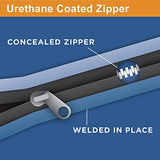 - 100% Waterproof with Dual Seam Technology (sewn for strength/welded waterproof) and ZipRight System (a urethane coated zipper located on the protective zipper flap where water cannot enter)