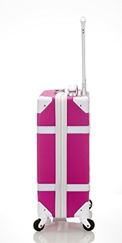 Details: Vintage look rolling trunk will bring a sense of sophistication to your travels. This trunk has a sense of nostalgia but has been updated with features for the seasoned traveler. Four full rotation wheels make effortless navigation through crowds and to your destination. Made of ABS which provides impact resistance and toughness for long time use and handling. Corners are wrapped in PVC for additional protection. Telescoping handle and top carry handle, interior mesh zip pocket & elasticated pocket storage. Measure 13"L x 8"W x 20"H and weighs only 6.5 lbs!