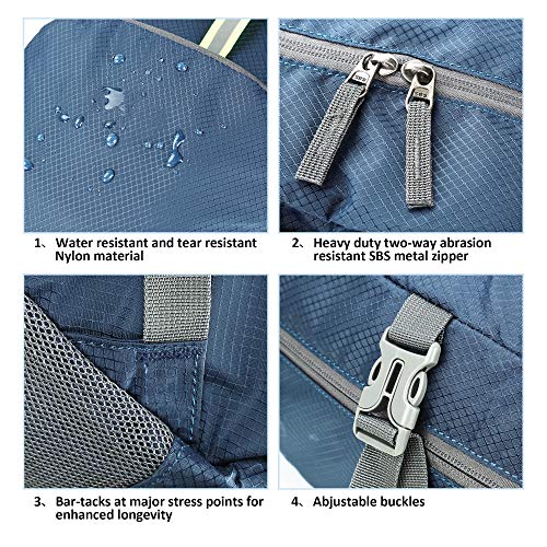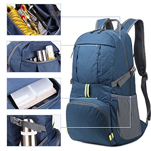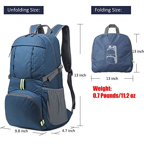 Details: Sarhlio 35L travel hiking backpack for all your organizing needs, ideal for day-to-day use or day trips, vacation, travel, day hikes, shopping, camping and disney day trip and so on. Two color for selections: Steady blue and versatile black. Large pocketsave plenty of room for clothes, shoes, towel, snacks, first aid kit , sunscreen and other essentials. Thanks to the super lightweight design, it is perfect choice for travel enthusiasts. PRODUCT FEATURE: - Resistant to water, wear resistance, provides long-lasting performance - Ultra lightweight and durable- 0.7 pounds, large capacity - Folds for easy storage in anywhere when not in use - Durable abrasion resistant SBS metal zipper, operates smoothly, no hiccups - Dry and wet separation and good pocket organized - Two color(Blue and Black) to choose from PRODUCT DETAIL: - One main zipped compartment, two zipped front pockets and two side pockets - 3m reflective strips design have warning function, which makes you safer at outdoors night travel - High strength nylon seam used in details - In spite of all controls, there might be minor flaws of Sarhlio backpacks and if this happens, simply let us know, the representative will provide you a hassle free refund or replacement to ensure your shopping satisfaction.