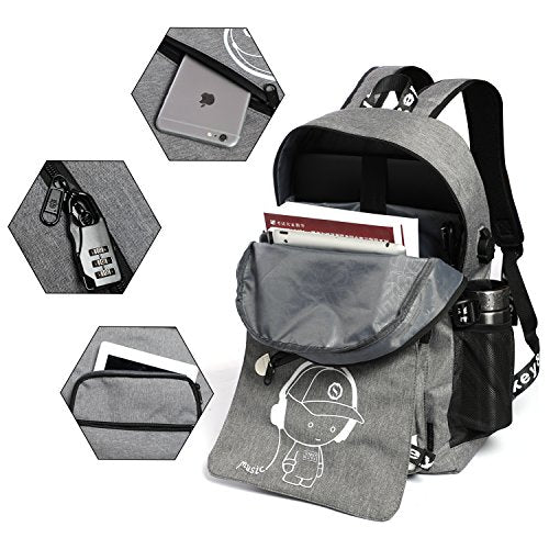 - USB CHARGING PORT: You can easily and conveniently charge your phone, tablet and other devices without opening up the backpack. Put your Power Bank into backpack and connect internal USB cable, then let your charging cable insert external USB port to connect your electronic device.