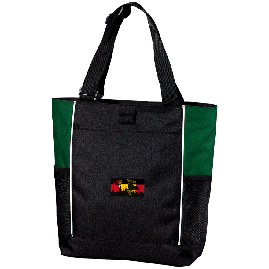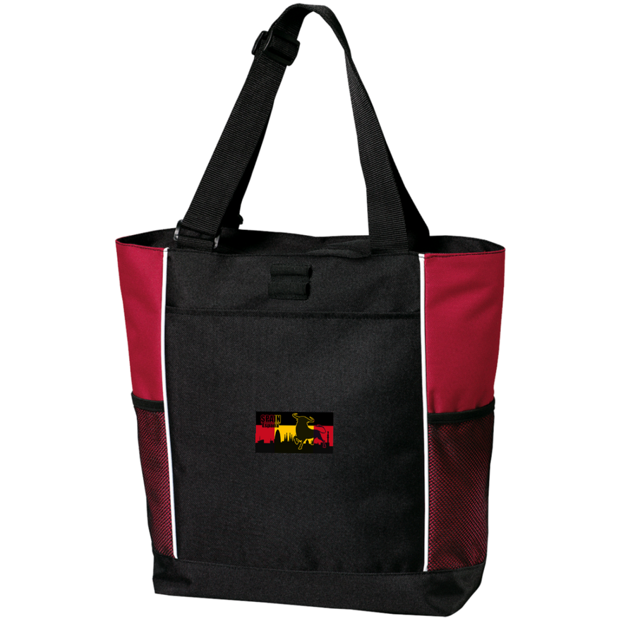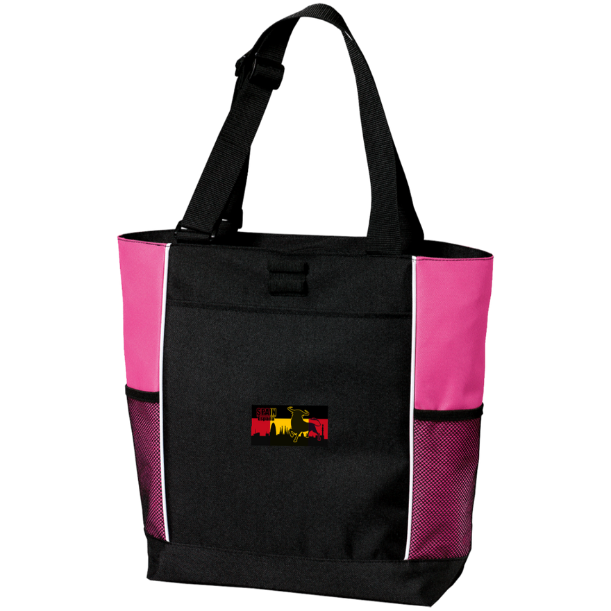 Zippered opening; Pen holder loops; Adjustable web handles; Large front pocket; Two side water bottle holders