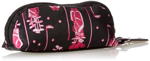 Details: Sporty and fun golf bag print. Adorable golf ball zipper pull. Holds three golf balls. Exterior clip and tee holder.