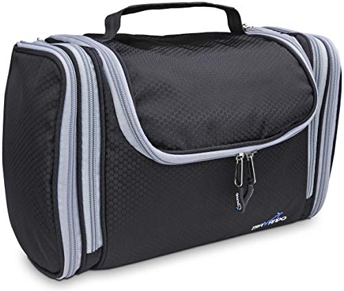 - ✅ SMART-HOOK - Use the built-in SMART-HOOK to hang the toiletry bag on all handles, bars, doorknobs and lock it with the rubber loop or carry it comfortably with the handle