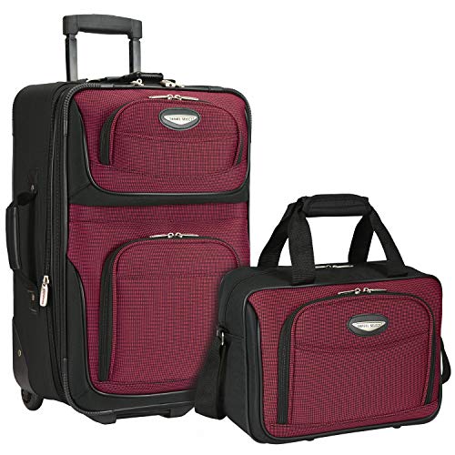 Details: Get this traveler's choice Amsterdam luggage set for your next trip. Perfect for packing your clothing and travel accessories, this 2-piece carry-on luggage set includes an upright case and a zippered travel tote for your belongings. The rolling upright is designed with a large main compartment with elastic tie-straps to secure your garments neatly. It also features separate pockets to keep your shoes and other essentials. With an expandable design, this luggage set offers 25 extra storage space to pack for long trips.
