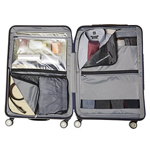 - Patented magnatrac system has self-aligning magnetic dual wheel spinners that ensure luggage rolls in a straight line