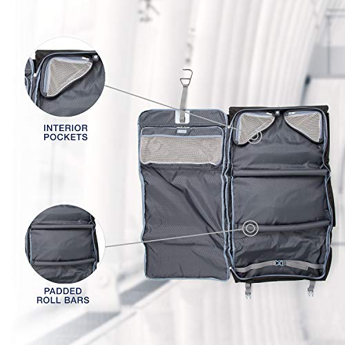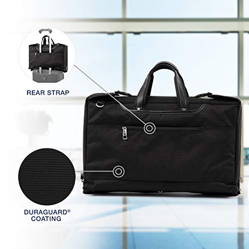 • Compact, carry-on garment bag with dual-hanger hooks allow you to hang the bag while open, providing easy access to contents. High-density nylon fabric with duraguard coating resists stains and abrasions