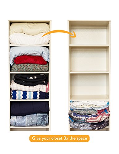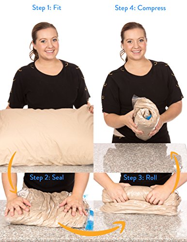 - FIT UP TO 3x MORE ON YOUR TRIP: Increase space in your suitcase or carry on with our premium space saving bags. To use simply place clothes, comforter, or fabric, close the bag sealer, and start rolling beginning form the zipper. The air will exit from the bottom of the bags until you fabric reaches maximum compression.