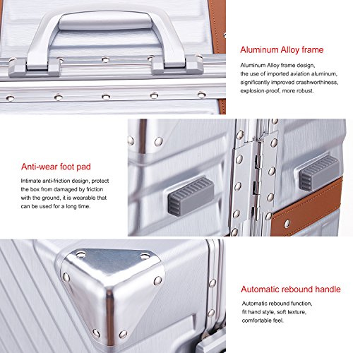 - Material:Luggage shell adopts anti-strike,impact-resistant,wear resistant,scratch resistant surface waterproof material.Add to it with good tenacity,lightweight,sturdy,difficult to deform;Strong,hard to bend aluminum frame replacing zipper to prevent the suitcase from damage when suffering heavy weight.