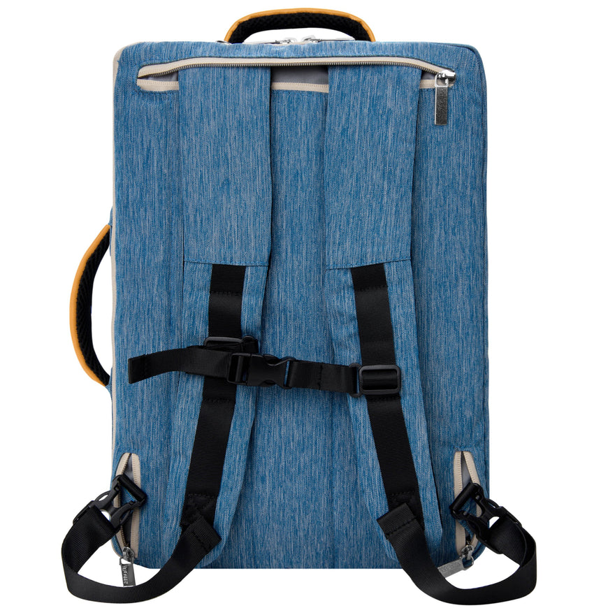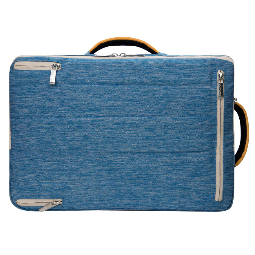 The VanGoddy Slate is a 3-in-1 hybrid laptop bag that offers a messenger, a backpack, and a briefcase tote all in one. The body was designed to be slim and modern but most of all highly productive. The exterior features canvas like nylon giving it a modern and trendy appearance. The frontal exterior features two zippered pockets one of which is appointed with an audio port for enjoying music on the go. The rear features a zippered pocket that contains the backpack straps but can also be used as an additional storage compartment. The main zippered compartment features a dedicated padded laptop compartment with closure. Also found in the interior main compartment is 2 large mesh pockets ideal for cables and cords, a large zippered pocket for keeping items separate and secure, and an additional slip pocket located near the laptop compartment. This bag can be worn comfortable for extended periods of time thanks to padded mesh shoulder straps, padded mesh handles, and padded messenger strap.