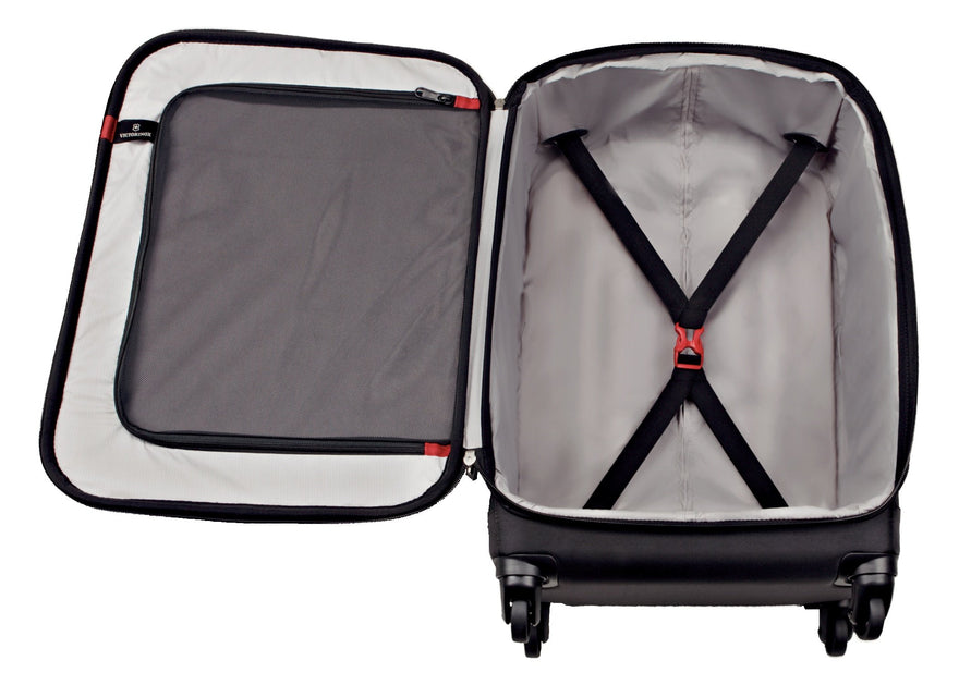 Details: From the Makers of the original Swiss Army Knife, this global carry-on is the lightest Victorinox luggage yet weighing just 2.5 kg / 5.5 lbs. Through innovative technology, traditional framing is replaced with highly-durable, pure polycarbonate. Aircraft-grade, one-touch, dual-trolley aluminum handle system locks into three different positions, 37Inhes / 94 cm, 39Inhes/ 99 cm and 41Inhes / 104 cm, to accommodate travelers of various heights. Dual-trolley handle system also allows you to adjust to the ideal handle position when transitioning from pushing the bag upright to pulling it on two-wheels. Four premium, 50mm Hinomoto wheels ensure a smooth roll across any surface and provide 360 Degree, zero weight-in-hand maneuverability. Interior features a zippered mesh pocket and compression straps that stretch to secure folded items. Removable drawstring bag allows you to separate shoes from clothing. Exterior front u-shaped pocket conveniently holds reading materials and travel documents. Integrated ID tag for security and convenience. Lockable YKK Racquet Coil zippers provide superior burst strength. Travel Sentry Approved combination lock secures belongings and allows U.S. TSA screeners to open the lock without destroying it and relock it after inspection.