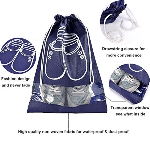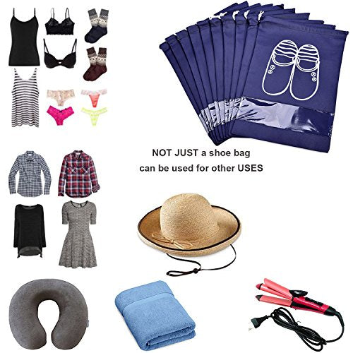 Vovoly Portable Travel Shoe Bags Dustproof Shoe Organizer for Men and Women Water-resistant Space Saving Storage Bags Navy Blue (10 pcs)