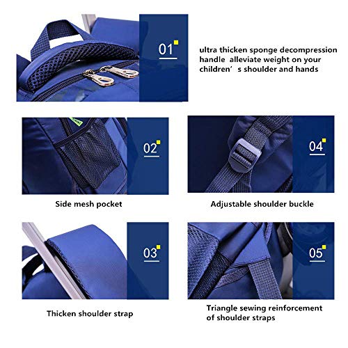 2. Comfortable: Backpack with solid rubber wheels, load-bearing, Multi-function Removable, Breathable back panel, the backpack decompression handle design alleviate weight on children's shoulder and hands.