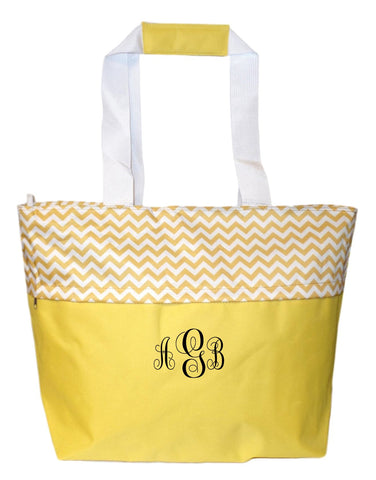 Jumbo Zipper Top Summer Beach Tote Bag - Personalization Available (Golden Yellow Embroidery Monogram)