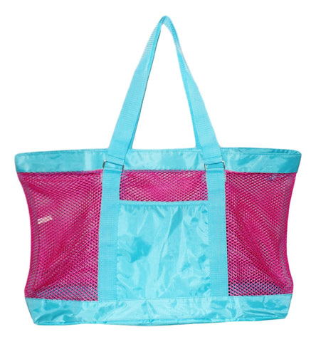 Super Large Mesh Tote Beach Bag - 24 x 15 x 6 - Can be Personalized (Blank Pink/Aqua)