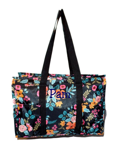 Fashion Print Zip Top Organizing Beach Bag Tote Diaper Bag Weekender - Can Be Personalized (Personalized Black Floral)